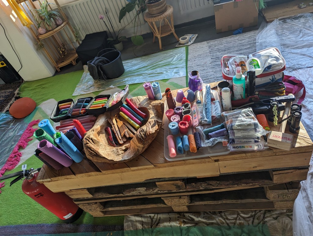 Voor sommige workshops werk ik uitsluitend met eigen demo-bottoms en spotters.